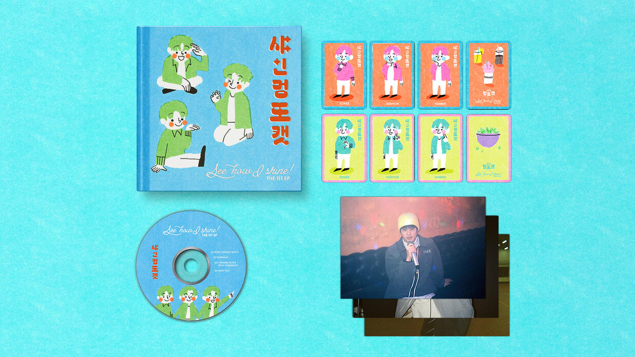 see how i shine! (2024) — passion project. imagining of an album by m countdown's MCs, shine meongddocat (myung jaehyun, sung hanbin, sohee).